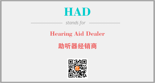 英文缩略词“HAD”经常作为“Hearing Aid Dealer”的英文缩写来使用,中文表示:“助听器经销商”。本文将详细介绍英文缩写词HAD所代表英文单词,其对应的中文拼音、详细解释以及在英语中的流行度。此外,还有关于缩略词HAD的分类、应用领域及相关应用示例等。