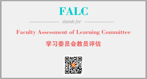 上述内容是“Faculty Assessment of Learning Committee”作为“FALC”的缩写,解释为“学习委员会教员评估”时的信息,以及英文缩略词FALC所代表的英文单词,其对应的中文拼音、详细解释以及在英文中的流行度和相关分类、应用领域及应用示例等。