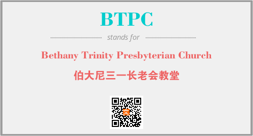 以上为Bethany Trinity Presbyterian Church英文缩略词BTPC的中文解释,以及该英文缩写在英语的流行度、分类和应用领域方面的信息。