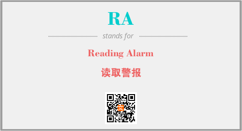 英文缩略词“RA”经常作为“Reading Alarm”的英文缩写来使用,中文表示:“读取警报”。本文将详细介绍英文缩写词RA所代表英文单词,其对应的中文拼音、详细解释以及在英语中的流行度。此外,还有关于缩略词RA的分类、应用领域及相关应用示例等。