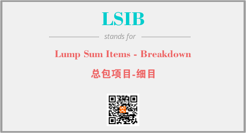 英文缩略词“LSIB”经常作为“Lump Sum Items - Breakdown”的英文缩写来使用,中文表示:“总包项目-细目”。本文将详细介绍英文缩写词LSIB所代表英文单词,其对应的中文拼音、详细解释以及在英语中的流行度。此外,还有关于缩略词LSIB的分类、应用领域及相关应用示例等。
