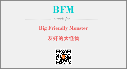 英文缩略词“BFM”经常作为“Big Friendly Monster”的英文缩写来使用,中文表示:“友好的大怪物”。本文将详细介绍英文缩写词BFM所代表英文单词,其对应的中文拼音、详细解释以及在英语中的流行度。此外,还有关于缩略词BFM的分类、应用领域及相关应用示例等。