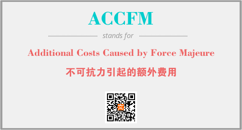 上述内容是“Additional Costs Caused by Force Majeure”作为“ACCFM”的缩写,解释为“不可抗力引起的额外费用”时的信息,以及英文缩略词ACCFM所代表的英文单词,其对应的中文拼音、详细解释以及在英文中的流行度和相关分类、应用领域及应用示例等。