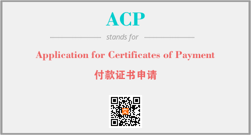 英文缩略词“ACP”经常作为“Application for Certificates of Payment”的英文缩写来使用,中文表示:“付款证书申请”。本文将详细介绍英文缩写词ACP所代表英文单词,其对应的中文拼音、详细解释以及在英语中的流行度。此外,还有关于缩略词ACP的分类、应用领域及相关应用示例等。