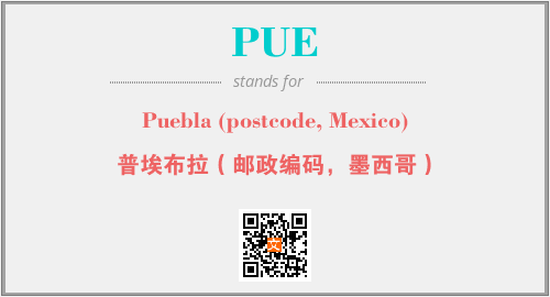 上述内容是“Puebla (postcode, Mexico)”作为“PUE”的缩写,解释为“普埃布拉(邮政编码,墨西哥)”时的信息,以及英文缩略词PUE所代表的英文单词,其对应的中文拼音、详细解释以及在英文中的流行度和相关分类、应用领域及应用示例等。