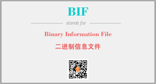 上述内容是“Binary Information File”作为“BIF”的缩写,解释为“二进制信息文件”时的信息,以及英文缩略词BIF所代表的英文单词,其对应的中文拼音、详细解释以及在英文中的流行度和相关分类、应用领域及应用示例等。