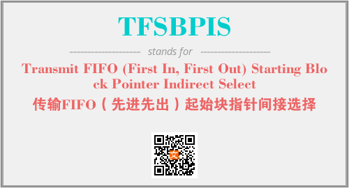 上述内容是“Transmit FIFO (First In, First Out) Starting Block Pointer Indirect Select”作为“TFSBPIS”的缩写,解释为“传输FIFO(先进先出)起始块指针间接选择”时的信息,以及英文缩略词TFSBPIS所代表的英文单词,其对应的中文拼音、详细解释以及在英文中的流行度和相关分类、应用领域及应用示例等。