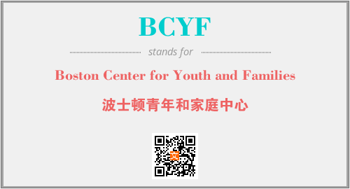 上述内容是“Boston Center for Youth and Families”作为“BCYF”的缩写,解释为“波士顿青年和家庭中心”时的信息,以及英文缩略词BCYF所代表的英文单词,其对应的中文拼音、详细解释以及在英文中的流行度和相关分类、应用领域及应用示例等。