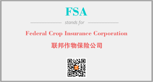 英文缩略词“FSA”经常作为“Federal Crop Insurance Corporation”的英文缩写来使用,中文表示:“联邦作物保险公司”。本文将详细介绍英文缩写词FSA所代表英文单词,其对应的中文拼音、详细解释以及在英语中的流行度。此外,还有关于缩略词FSA的分类、应用领域及相关应用示例等。
