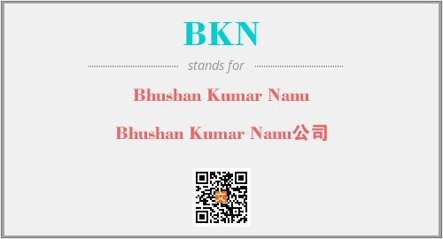 上述内容是“Bhushan Kumar Nanu”作为“BKN”的缩写,解释为“Bhushan Kumar Nanu公司”时的信息,以及英文缩略词BKN所代表的英文单词,其对应的中文拼音、详细解释以及在英文中的流行度和相关分类、应用领域及应用示例等。