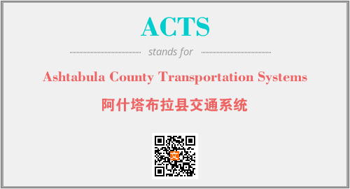 上述内容是“Ashtabula County Transportation Systems”作为“ACTS”的缩写,解释为“阿什塔布拉县交通系统”时的信息,以及英文缩略词ACTS所代表的英文单词,其对应的中文拼音、详细解释以及在英文中的流行度和相关分类、应用领域及应用示例等。