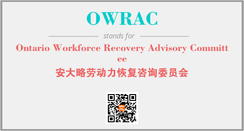 上述内容是“Ontario Workforce Recovery Advisory Committee”作为“OWRAC”的缩写,解释为“安大略劳动力恢复咨询委员会”时的信息,以及英文缩略词OWRAC所代表的英文单词,其对应的中文拼音、详细解释以及在英文中的流行度和相关分类、应用领域及应用示例等。