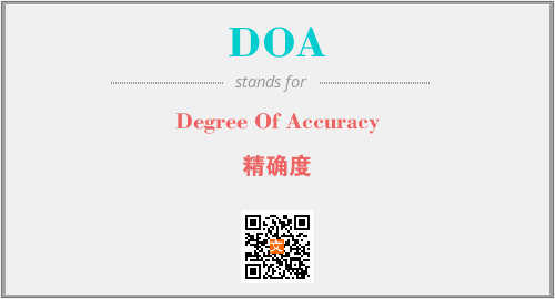上述内容是“Degree Of Accuracy”作为“DOA”的缩写,解释为“精确度”时的信息,以及英文缩略词DOA所代表的英文单词,其对应的中文拼音、详细解释以及在英文中的流行度和相关分类、应用领域及应用示例等。