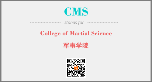 上述内容是“College of Martial Science”作为“CMS”的缩写,解释为“军事学院”时的信息,以及英文缩略词CMS所代表的英文单词,其对应的中文拼音、详细解释以及在英文中的流行度和相关分类、应用领域及应用示例等。