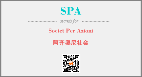 英文缩略词“SPA”经常作为“Societ Per Azioni”的英文缩写来使用,中文表示:“阿齐奥尼社会”。本文将详细介绍英文缩写词SPA所代表英文单词,其对应的中文拼音、详细解释以及在英语中的流行度。此外,还有关于缩略词SPA的分类、应用领域及相关应用示例等。