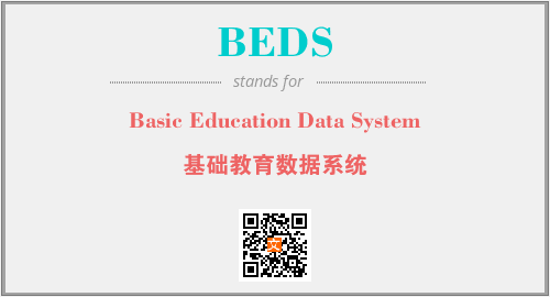 英文缩略词“BEDS”经常作为“Basic Education Data System”的英文缩写来使用,中文表示:“基础教育数据系统”。本文将详细介绍英文缩写词BEDS所代表英文单词,其对应的中文拼音、详细解释以及在英语中的流行度。此外,还有关于缩略词BEDS的分类、应用领域及相关应用示例等。