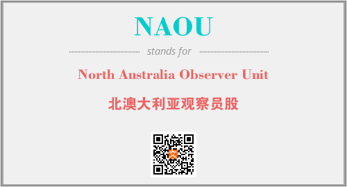 上述内容是“North Australia Observer Unit”作为“NAOU”的缩写,解释为“北澳大利亚观察员股”时的信息,以及英文缩略词NAOU所代表的英文单词,其对应的中文拼音、详细解释以及在英文中的流行度和相关分类、应用领域及应用示例等。