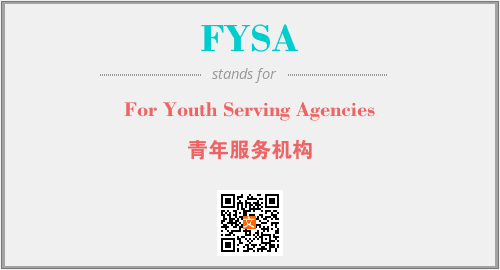 英文缩略词“FYSA”经常作为“For Youth Serving Agencies”的英文缩写来使用,中文表示:“青年服务机构”。本文将详细介绍英文缩写词FYSA所代表英文单词,其对应的中文拼音、详细解释以及在英语中的流行度。此外,还有关于缩略词FYSA的分类、应用领域及相关应用示例等。