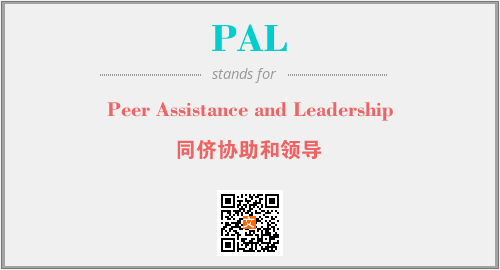 以上为Peer Assistance and Leadership英文缩略词PAL的中文解释,以及该英文缩写在英语的流行度、分类和应用领域方面的信息。