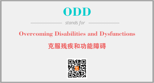 英文缩略词“ODD”经常作为“Overcoming Disabilities and Dysfunctions”的英文缩写来使用,中文表示:“克服残疾和功能障碍”。本文将详细介绍英文缩写词ODD所代表英文单词,其对应的中文拼音、详细解释以及在英语中的流行度。此外,还有关于缩略词ODD的分类、应用领域及相关应用示例等。
