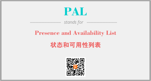 上述内容是“Presence and Availability List”作为“PAL”的缩写,解释为“状态和可用性列表”时的信息,以及英文缩略词PAL所代表的英文单词,其对应的中文拼音、详细解释以及在英文中的流行度和相关分类、应用领域及应用示例等。