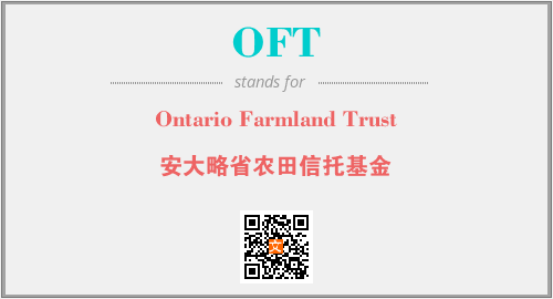 以上为Ontario Farmland Trust英文缩略词OFT的中文解释,以及该英文缩写在英语的流行度、分类和应用领域方面的信息。