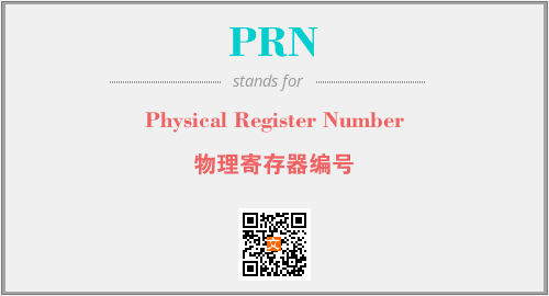 英文缩略词“PRN”经常作为“Physical Register Number”的英文缩写来使用,中文表示:“物理寄存器编号”。本文将详细介绍英文缩写词PRN所代表英文单词,其对应的中文拼音、详细解释以及在英语中的流行度。此外,还有关于缩略词PRN的分类、应用领域及相关应用示例等。