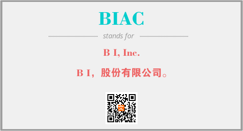 上述内容是“B I, Inc.”作为“BIAC”的缩写,解释为“B I,股份有限公司。”时的信息,以及英文缩略词BIAC所代表的英文单词,其对应的中文拼音、详细解释以及在英文中的流行度和相关分类、应用领域及应用示例等。