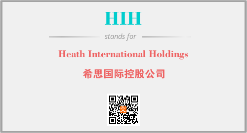 上述内容是“Heath International Holdings”作为“HIH”的缩写,解释为“希思国际控股公司”时的信息,以及英文缩略词HIH所代表的英文单词,其对应的中文拼音、详细解释以及在英文中的流行度和相关分类、应用领域及应用示例等。