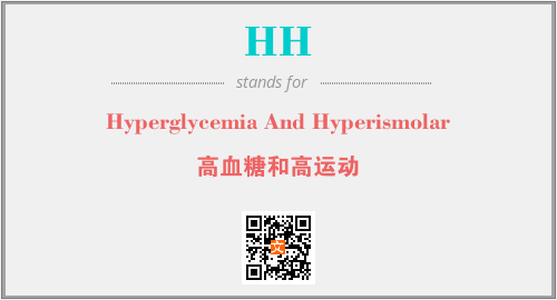 上述内容是“Hyperglycemia And Hyperismolar”作为“HH”的缩写,解释为“高血糖和高运动”时的信息,以及英文缩略词HH所代表的英文单词,其对应的中文拼音、详细解释以及在英文中的流行度和相关分类、应用领域及应用示例等。