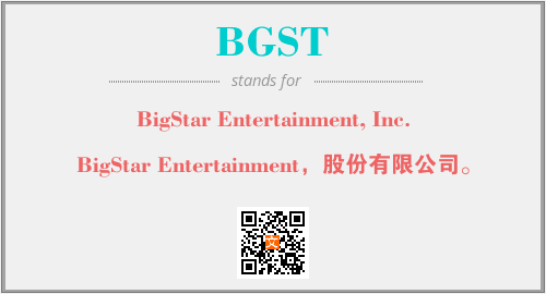 上述内容是“BigStar Entertainment, Inc.”作为“BGST”的缩写,解释为“BigStar Entertainment,股份有限公司。”时的信息,以及英文缩略词BGST所代表的英文单词,其对应的中文拼音、详细解释以及在英文中的流行度和相关分类、应用领域及应用示例等。
