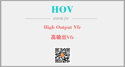 英文缩略词“HOV”经常作为“High Output Vfr”的英文缩写来使用,中文表示:“高输出Vfr”。本文将详细介绍英文缩写词HOV所代表英文单词,其对应的中文拼音、详细解释以及在英语中的流行度。此外,还有关于缩略词HOV的分类、应用领域及相关应用示例等。