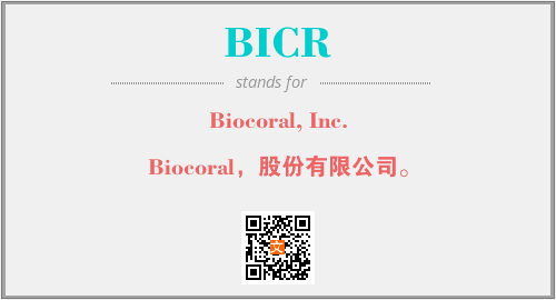 上述内容是“Biocoral, Inc.”作为“BICR”的缩写,解释为“Biocoral,股份有限公司。”时的信息,以及英文缩略词BICR所代表的英文单词,其对应的中文拼音、详细解释以及在英文中的流行度和相关分类、应用领域及应用示例等。