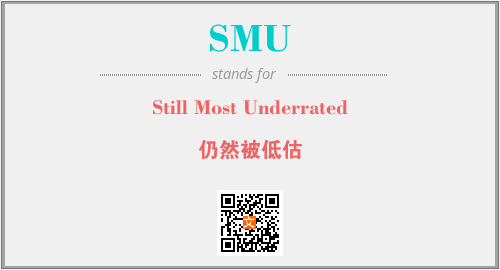 上述内容是“Still Most Underrated”作为“SMU”的缩写,解释为“仍然被低估”时的信息,以及英文缩略词SMU所代表的英文单词,其对应的中文拼音、详细解释以及在英文中的流行度和相关分类、应用领域及应用示例等。