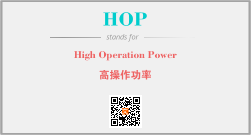 上述内容是“High Operation Power”作为“HOP”的缩写,解释为“高操作功率”时的信息,以及英文缩略词HOP所代表的英文单词,其对应的中文拼音、详细解释以及在英文中的流行度和相关分类、应用领域及应用示例等。