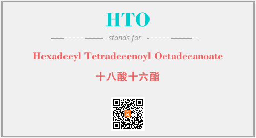 上述内容是“Hexadecyl Tetradecenoyl Octadecanoate”作为“HTO”的缩写,解释为“十八酸十六酯”时的信息,以及英文缩略词HTO所代表的英文单词,其对应的中文拼音、详细解释以及在英文中的流行度和相关分类、应用领域及应用示例等。