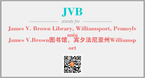 上述内容是“James V. Brown Library, Williamsport, Pennsylvania”作为“JVB”的缩写,解释为“James V.Brown图书馆,宾夕法尼亚州Williamsport”时的信息,以及英文缩略词JVB所代表的英文单词,其对应的中文拼音、详细解释以及在英文中的流行度和相关分类、应用领域及应用示例等。