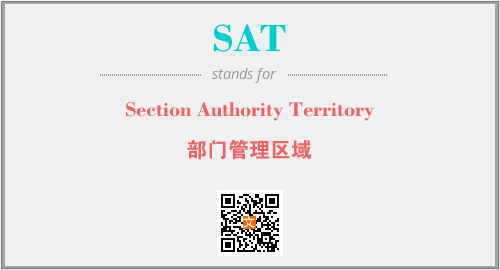英文缩略词“SAT”经常作为“Section Authority Territory”的英文缩写来使用,中文表示:“部门管理区域”。本文将详细介绍英文缩写词SAT所代表英文单词,其对应的中文拼音、详细解释以及在英语中的流行度。此外,还有关于缩略词SAT的分类、应用领域及相关应用示例等。
