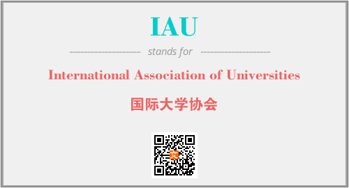 英文缩略词“IAU”经常作为“International Association of Universities”的英文缩写来使用,中文表示:“国际大学协会”。本文将详细介绍英文缩写词IAU所代表英文单词,其对应的中文拼音、详细解释以及在英语中的流行度。此外,还有关于缩略词IAU的分类、应用领域及相关应用示例等。