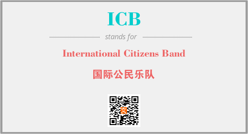 英文缩略词“ICB”经常作为“International Citizens Band”的英文缩写来使用,中文表示:“国际公民乐队”。本文将详细介绍英文缩写词ICB所代表英文单词,其对应的中文拼音、详细解释以及在英语中的流行度。此外,还有关于缩略词ICB的分类、应用领域及相关应用示例等。