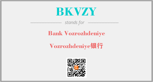 上述内容是“Bank Vozrozhdeniye”作为“BKVZY”的缩写,解释为“Vozrozhdeniye银行”时的信息,以及英文缩略词BKVZY所代表的英文单词,其对应的中文拼音、详细解释以及在英文中的流行度和相关分类、应用领域及应用示例等。