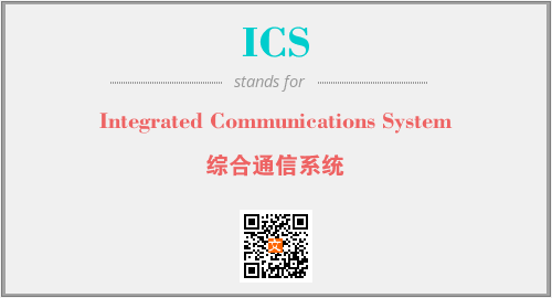 英文缩略词“ICS”经常作为“Integrated Communications System”的英文缩写来使用,中文表示:“综合通信系统”。本文将详细介绍英文缩写词ICS所代表英文单词,其对应的中文拼音、详细解释以及在英语中的流行度。此外,还有关于缩略词ICS的分类、应用领域及相关应用示例等。