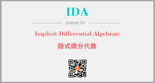 上述内容是“Implicit Differential Algebraic”作为“IDA”的缩写,解释为“隐式微分代数”时的信息,以及英文缩略词IDA所代表的英文单词,其对应的中文拼音、详细解释以及在英文中的流行度和相关分类、应用领域及应用示例等。