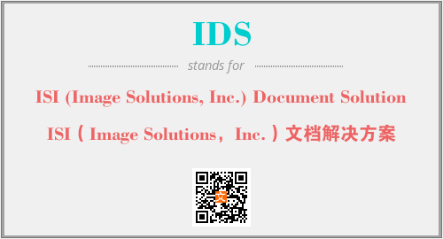 上述内容是“ISI (Image Solutions, Inc.) Document Solution”作为“IDS”的缩写,解释为“ISI(Image Solutions,Inc.)文档解决方案”时的信息,以及英文缩略词IDS所代表的英文单词,其对应的中文拼音、详细解释以及在英文中的流行度和相关分类、应用领域及应用示例等。