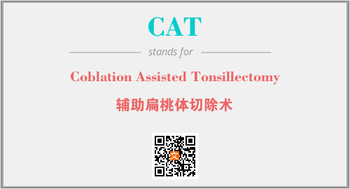上述内容是“Coblation Assisted Tonsillectomy”作为“CAT”的缩写,解释为“辅助扁桃体切除术”时的信息,以及英文缩略词CAT所代表的英文单词,其对应的中文拼音、详细解释以及在英文中的流行度和相关分类、应用领域及应用示例等。