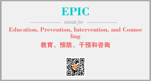 上述内容是“Education, Prevention, Intervention, and Counseling”作为“EPIC”的缩写,解释为“教育、预防、干预和咨询”时的信息,以及英文缩略词EPIC所代表的英文单词,其对应的中文拼音、详细解释以及在英文中的流行度和相关分类、应用领域及应用示例等。