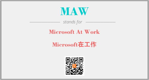 上述内容是“Microsoft At Work”作为“MAW”的缩写,解释为“Microsoft在工作”时的信息,以及英文缩略词MAW所代表的英文单词,其对应的中文拼音、详细解释以及在英文中的流行度和相关分类、应用领域及应用示例等。