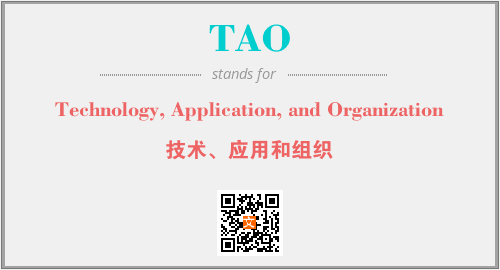 上述内容是“Technology, Application, and Organization”作为“TAO”的缩写,解释为“技术、应用和组织”时的信息,以及英文缩略词TAO所代表的英文单词,其对应的中文拼音、详细解释以及在英文中的流行度和相关分类、应用领域及应用示例等。