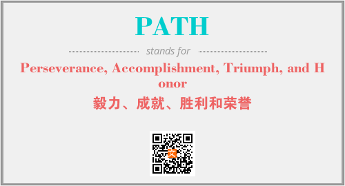 以上为Perseverance, Accomplishment, Triumph, and Honor英文缩略词PATH的中文解释,以及该英文缩写在英语的流行度、分类和应用领域方面的信息。