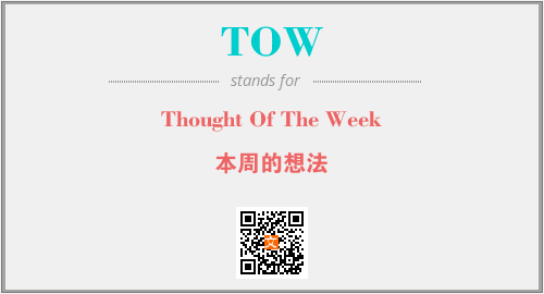 英文缩略词“TOW”经常作为“Thought Of The Week”的英文缩写来使用,中文表示:“本周的想法”。本文将详细介绍英文缩写词TOW所代表英文单词,其对应的中文拼音、详细解释以及在英语中的流行度。此外,还有关于缩略词TOW的分类、应用领域及相关应用示例等。